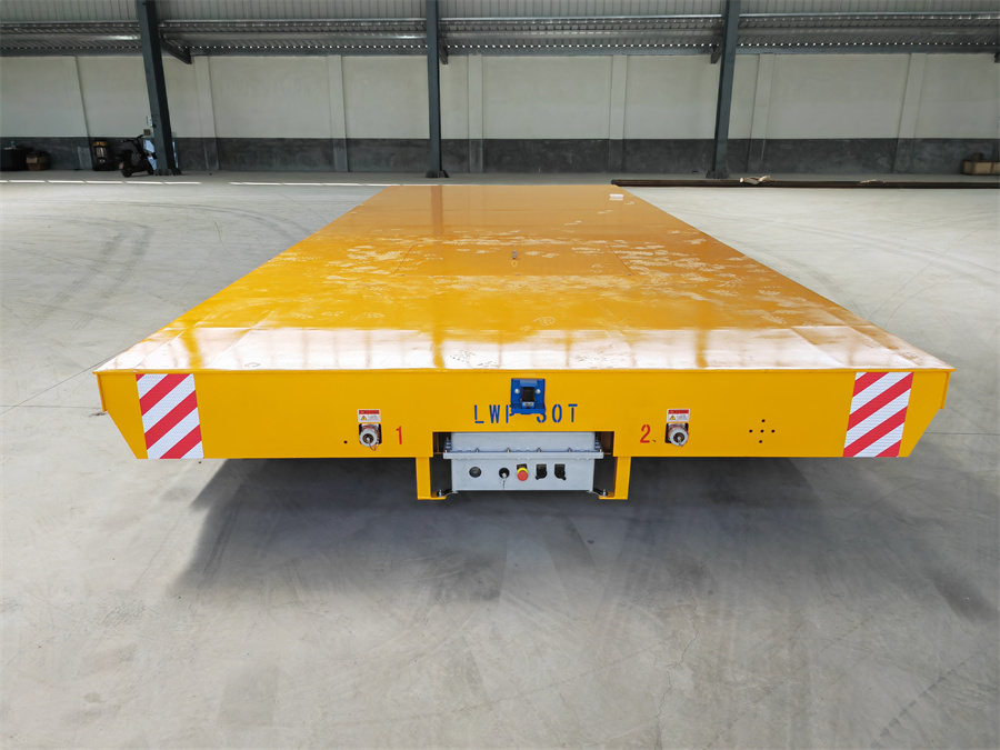 承載30噸大尺寸臺面無軌搬運(yùn)車,可以單獨(dú)固定萬向輪防止晃動,增加穩(wěn)定性。運(yùn)行方向加裝雷達(dá)防撞感應(yīng)裝置,增加安全性。